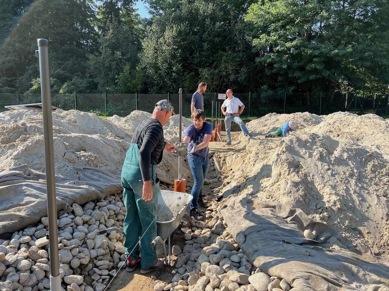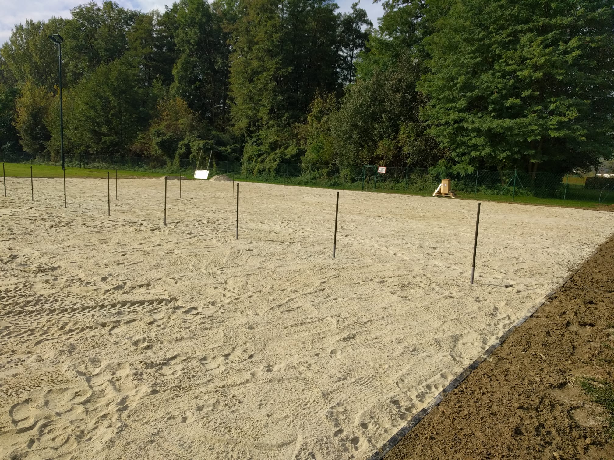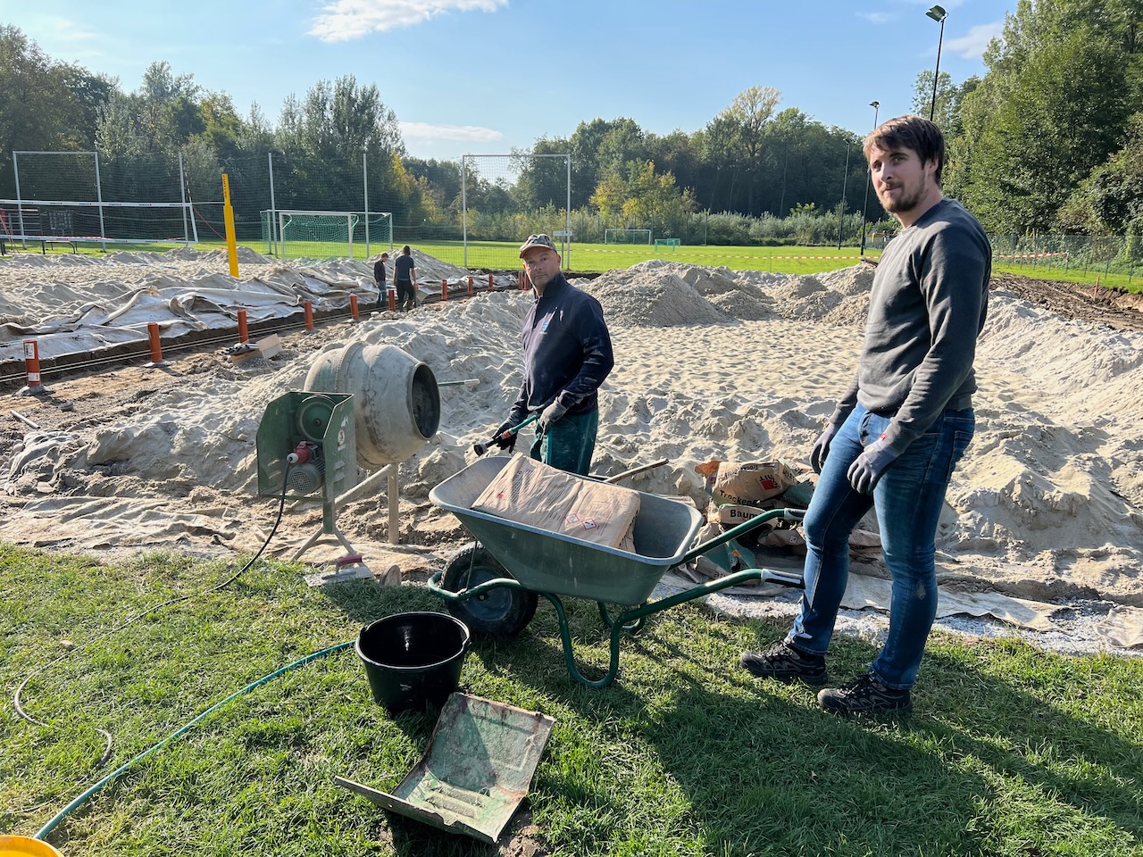 An zwei Wochenenden im Oktober wurde einerseits durch Eigenleistungen von uns als Verein sowie mithilfe verschiedener Baufirmen die Sandfläche vergrößert, die Umrandung erneuert sowie Vorbereitungen für entsprechende Abgrenzungen zwischen den Plätzen getroffen.